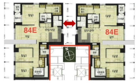 인기 평형대인 84㎡ 일부 세대는 주방창문을 통해 옆집을 보게되는 '주방뷰'를 갖고 있습니다.