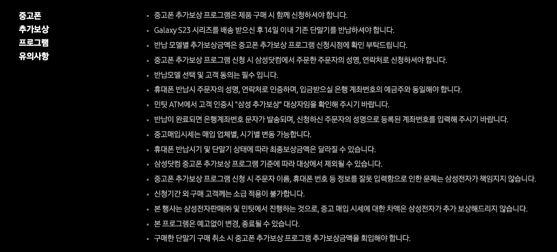 갤럭시 S23 시리즈 구매 후 기존에 사용하던 핸드폰을 반납하며 최대 15만 원을 보상받을 수 있습니다. 중고폰 추가보상 프로그램 신청은 3월 31일까지 가능하며, 갤럭시 S23 시리즈 구매 후 14일 이내에 신청하여야 합니다.