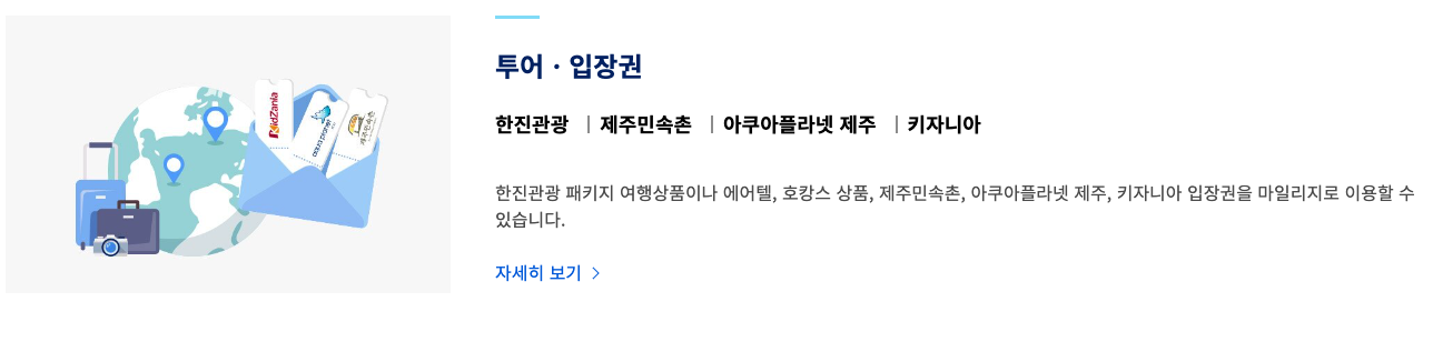 - 접속방법 : 대한항공 홈페이지 -> 스카이패스 -> 마일리지몰