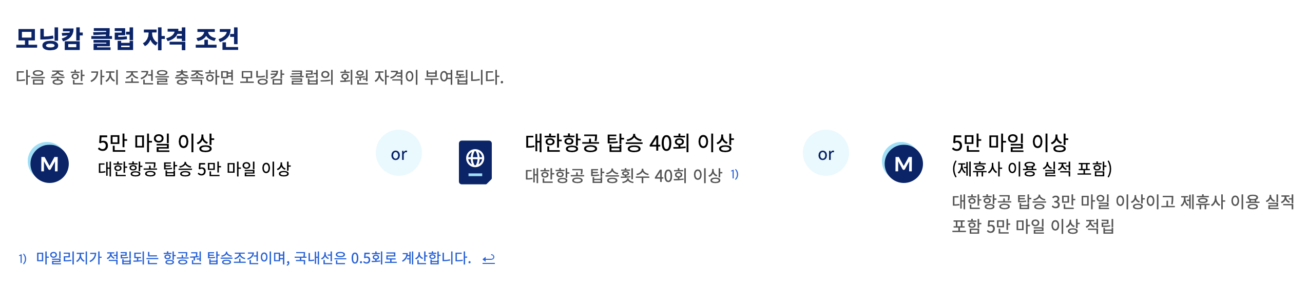 - 기존 마일리지와 차이점 : 운항거리 기준, 편도 기준 발권가능