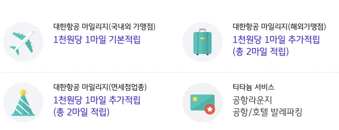 - 대한항공 마일리지 카드 추천(현대카드, 삼성카드) 바로가기