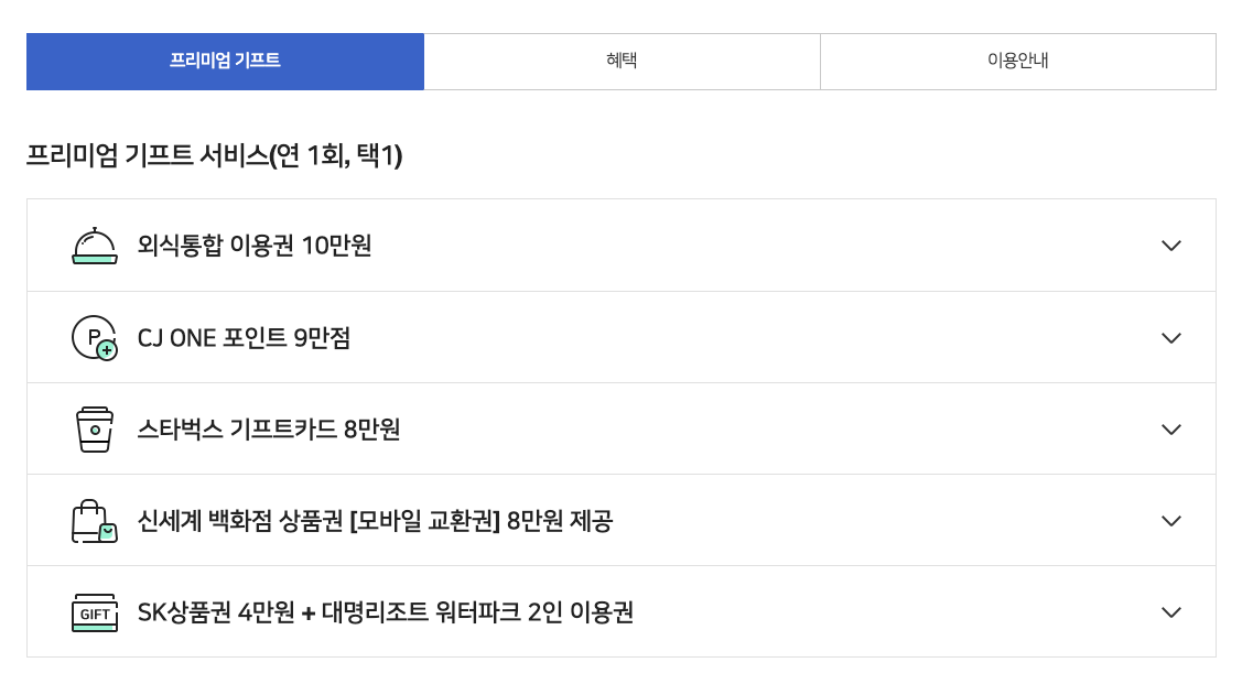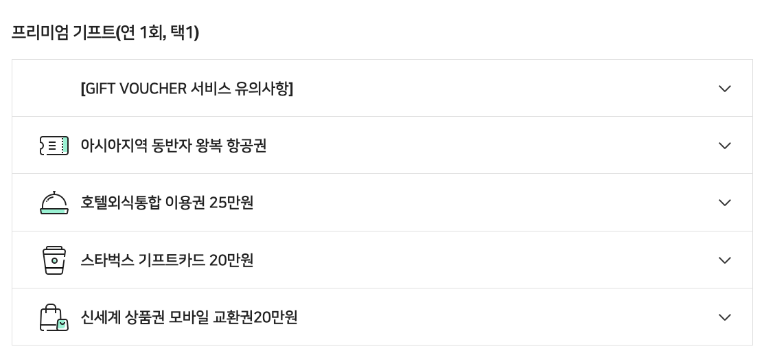 카드의 정석 프리미엄 마일리지는 연회비 135,000원이며, 카드의 정석 마일리지의 혜택에 추가로 프리미엄 기프트 서비스가 제공되고 있습니다. 연회비가 비싼 만큼 프리미엄 기프트 서비스를 제공해 주어 페이백 받는 느낌을 주고 있습니다. 공항 라운지 이용 횟수도 카드의 정석 마일리지보다 2회 더 제공해 연 5회를 제공하고 있습니다. 추가로 1 마일리지 제공해 주는 서비스는 해외 이용 내역과 면세점 이용 내역이 있을 경우 제공합니다.