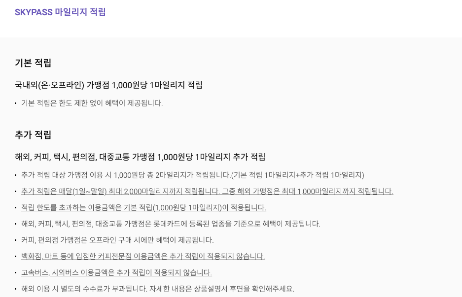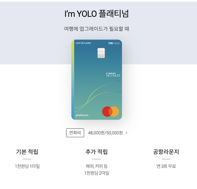 롯데카드는 대한항공 마일리지 적립 카드 종류가 3가지가 있지만, 2가지만 1천원당 1마일리지를 적립해 주기 때문에 2가지 카드만 소개하였습니다.