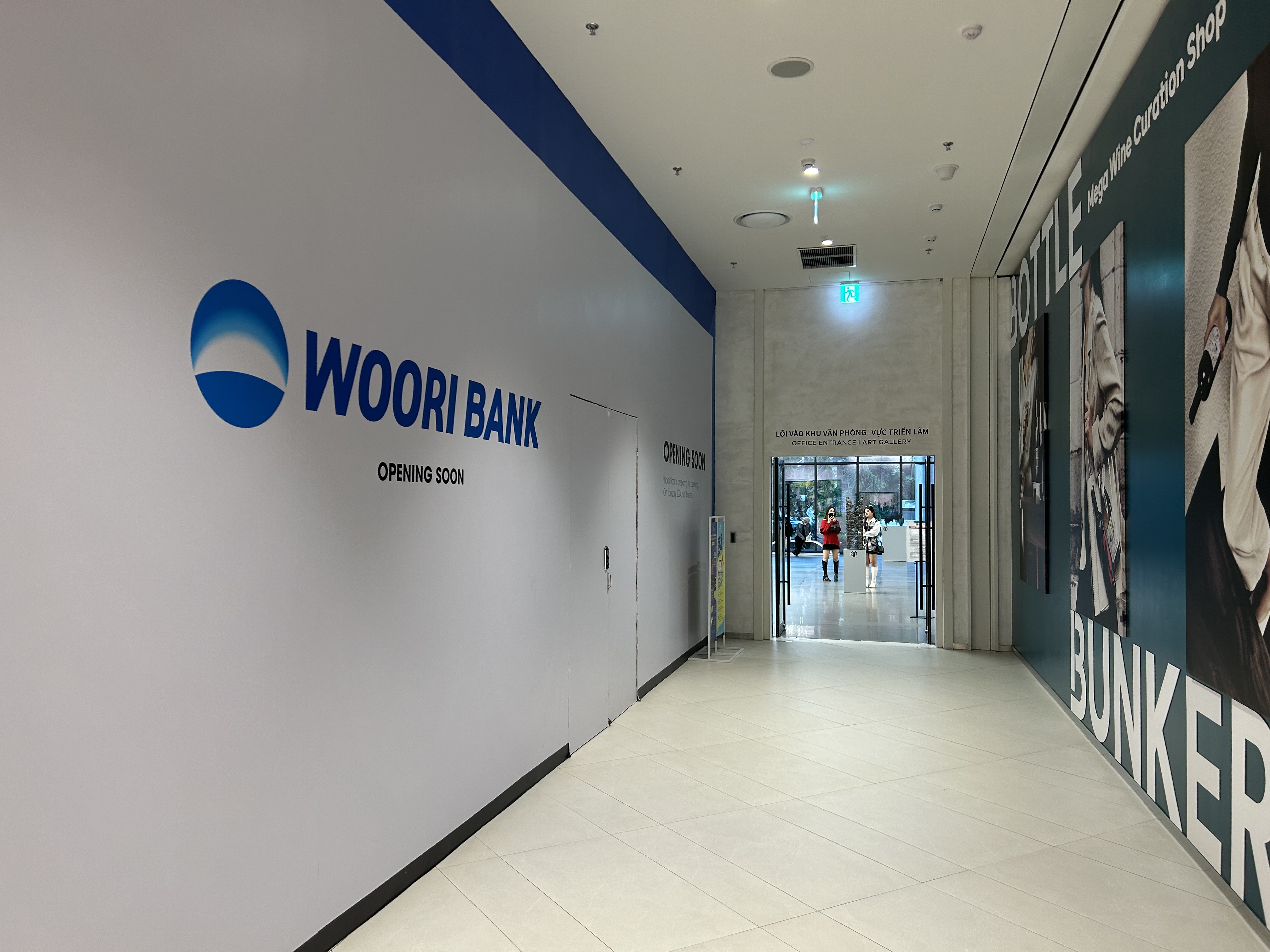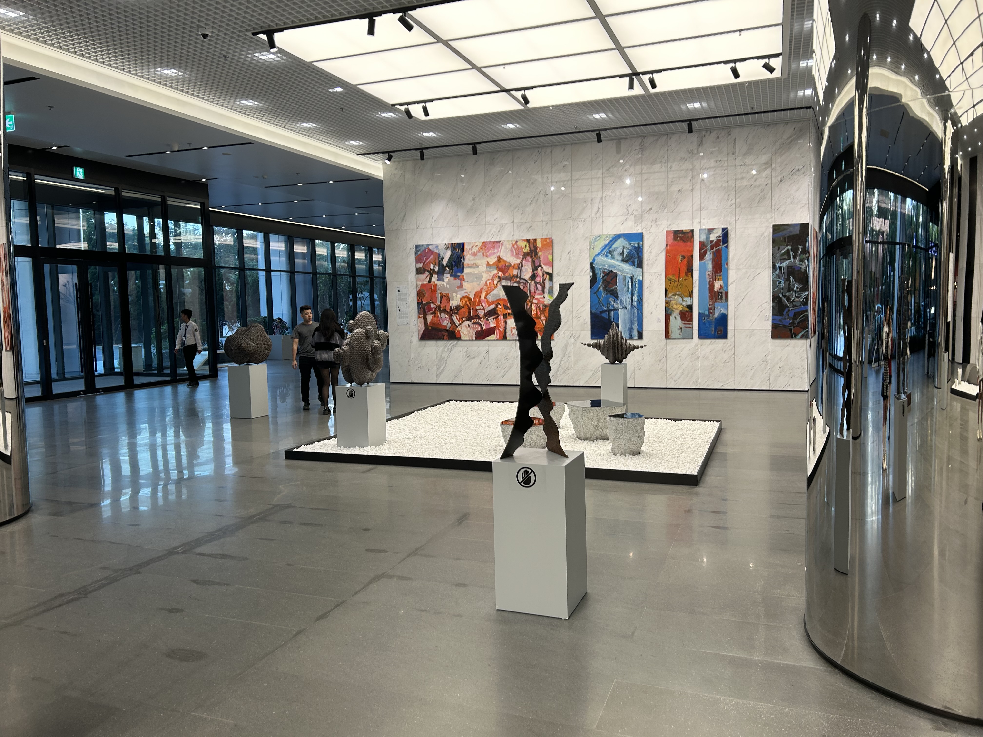 쇼핑몰과 오피스 공간이 연결된 공간에 우리은행이 공사중이었고, 오피스 1층에는 예술작품이 전시 중이었습니다.