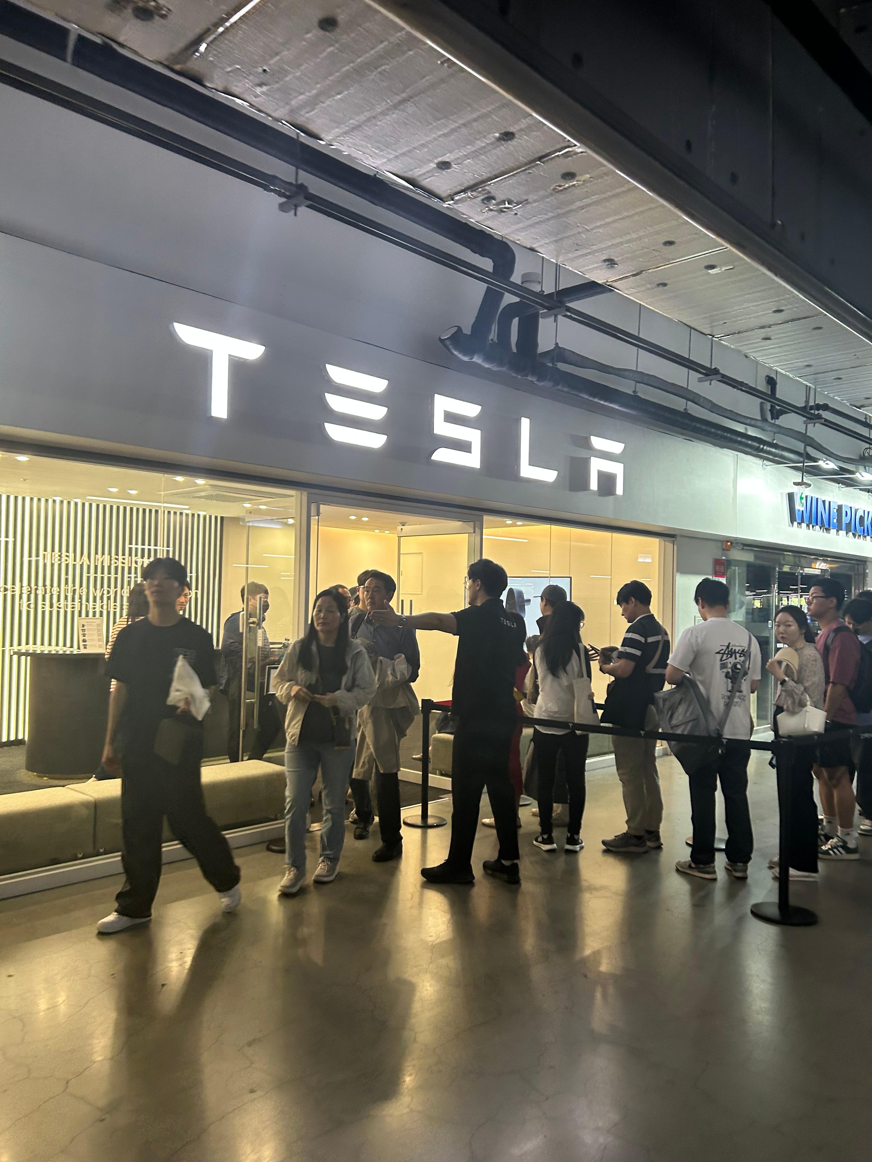 안내받은 대로 이케아 2층 주차장으로 가니 테슬라 사무실 근처에 사람들이 모여있었습니다.
