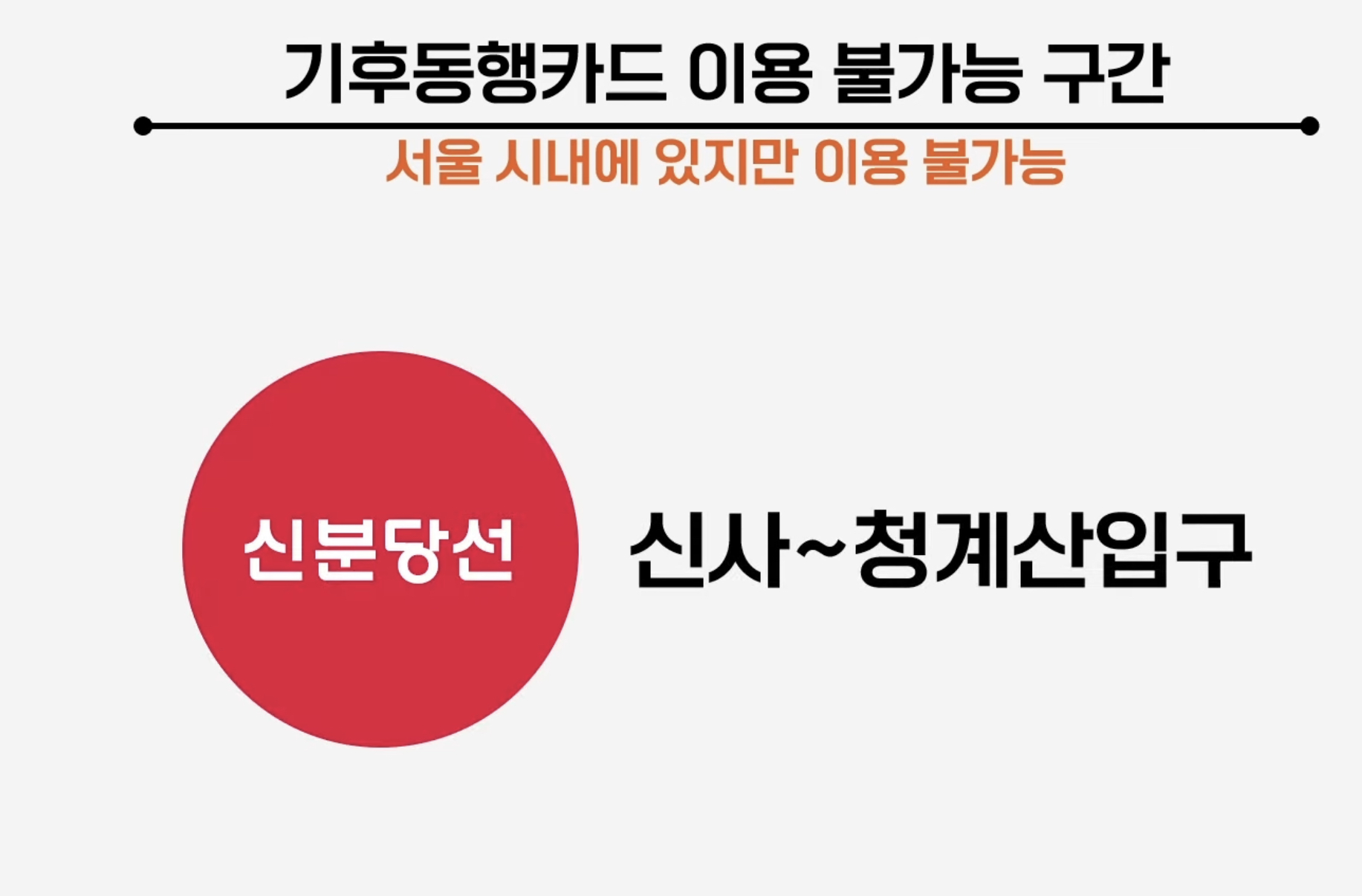 신분당선 '신사'에서 '청계산입구'까지는 서울 시내에 있는 지하철이지만 기후동행카드로 이용이 불가능한 구간 입니다!