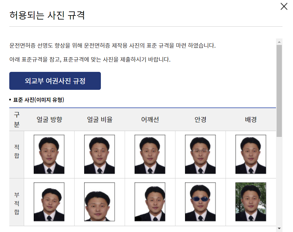 사진 규격은 아래 사진을 참고하시면 됩니다.