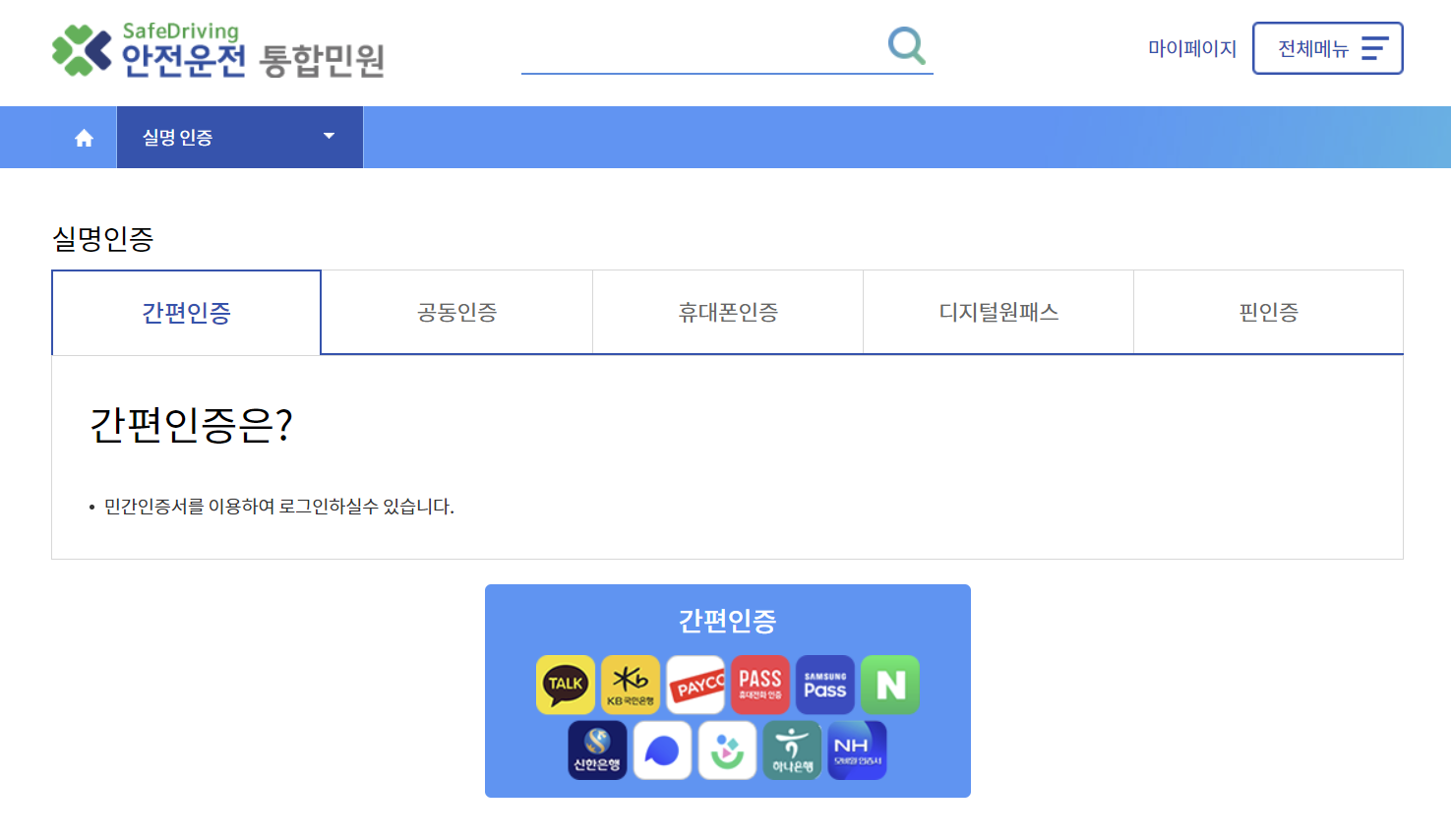 본인인증 후 적성검사 갱신 신청이 가능해집니다.