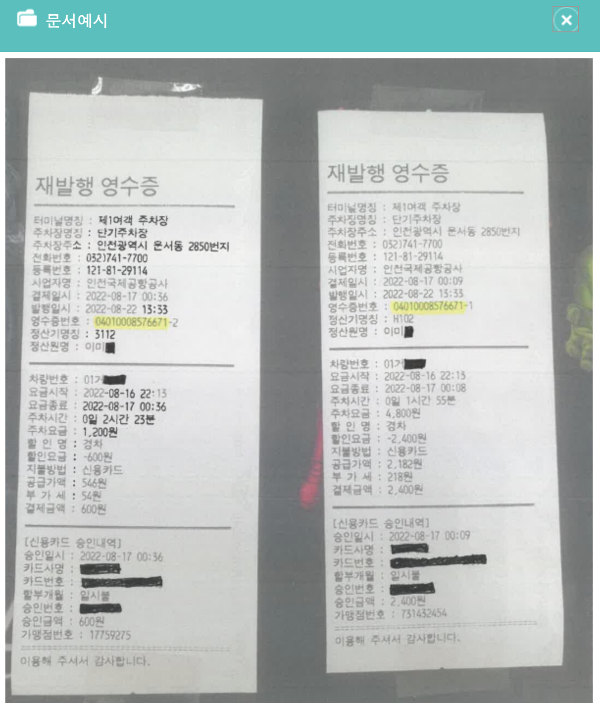 실물 영수증이 없다고 걱정하지마세요! 주차장 고객센터로 문의하면 영수증 번호를 알려드리니 걱정마세요.