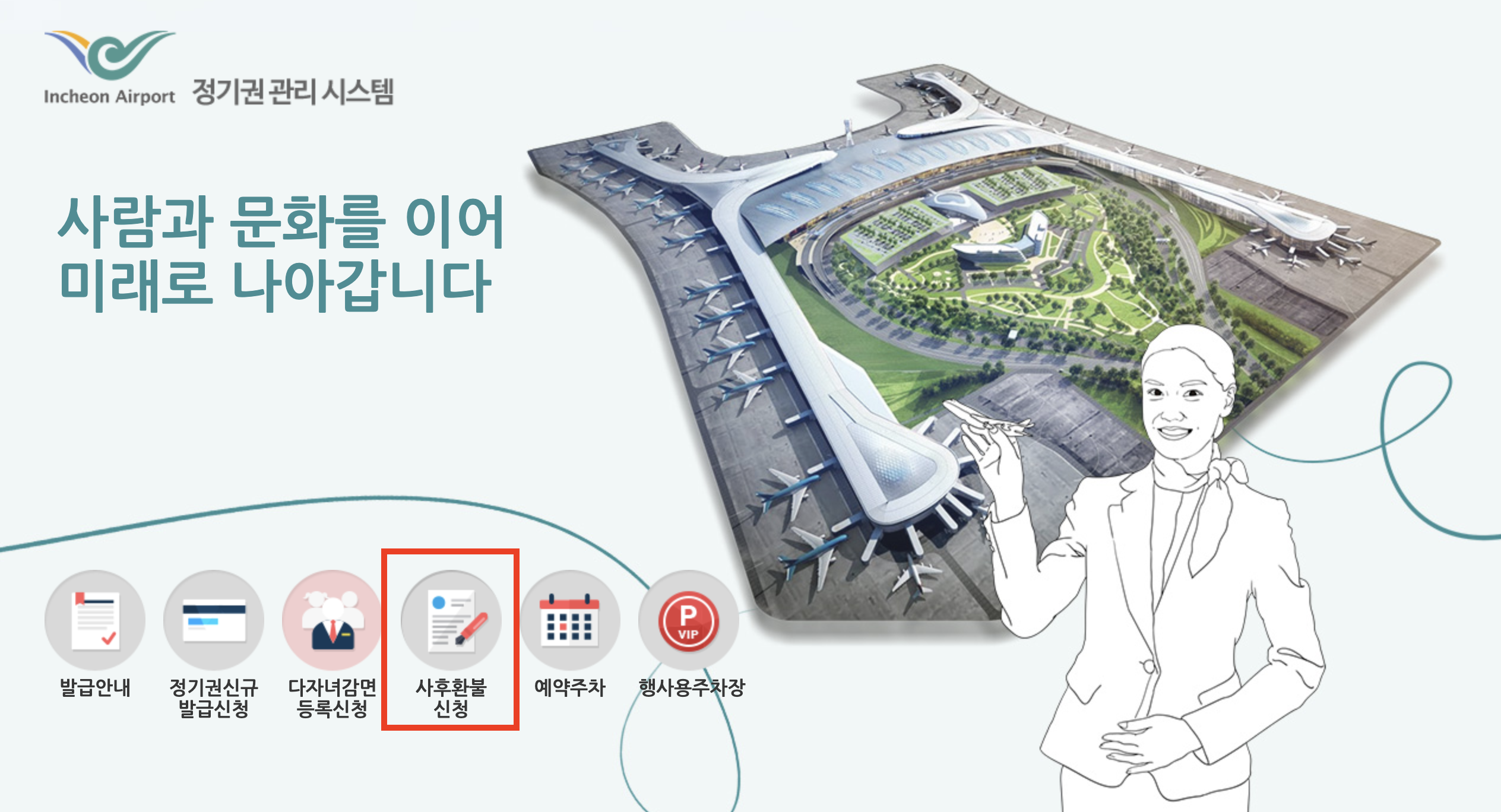 인천공항 정기권 관리 시스템 메인페이지에 '사후환불 신청'탭을 눌러서 정보를 기재하는 것이 첫 시작입니다.