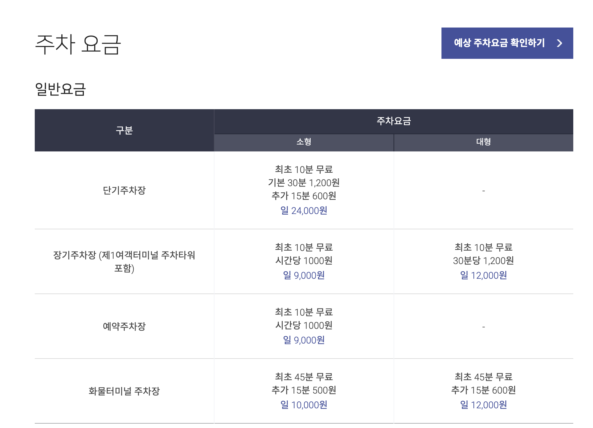 요금은 단기주차장이 장기주차장보다 훨씬 비싸게 책정되어 있습니다.