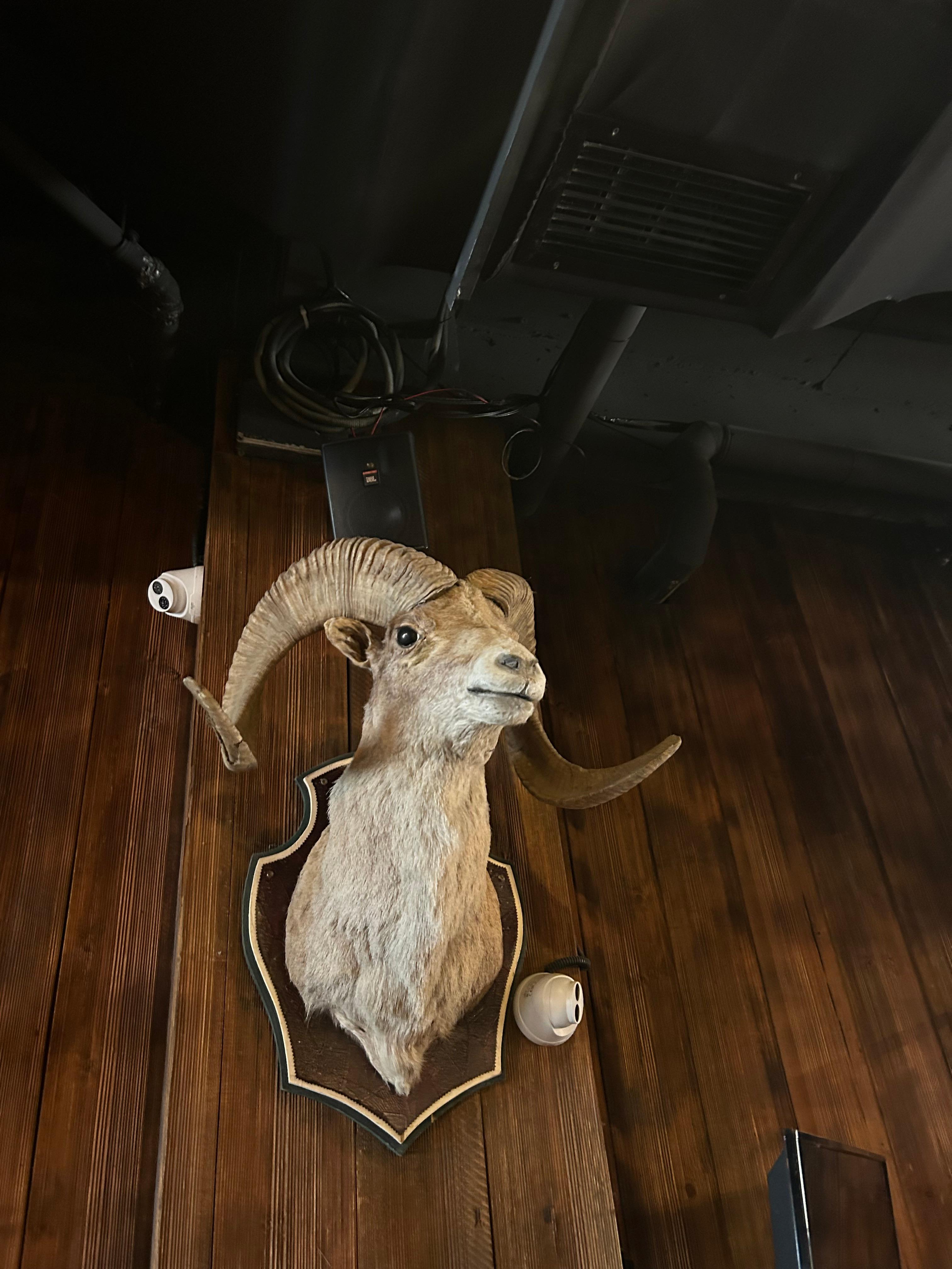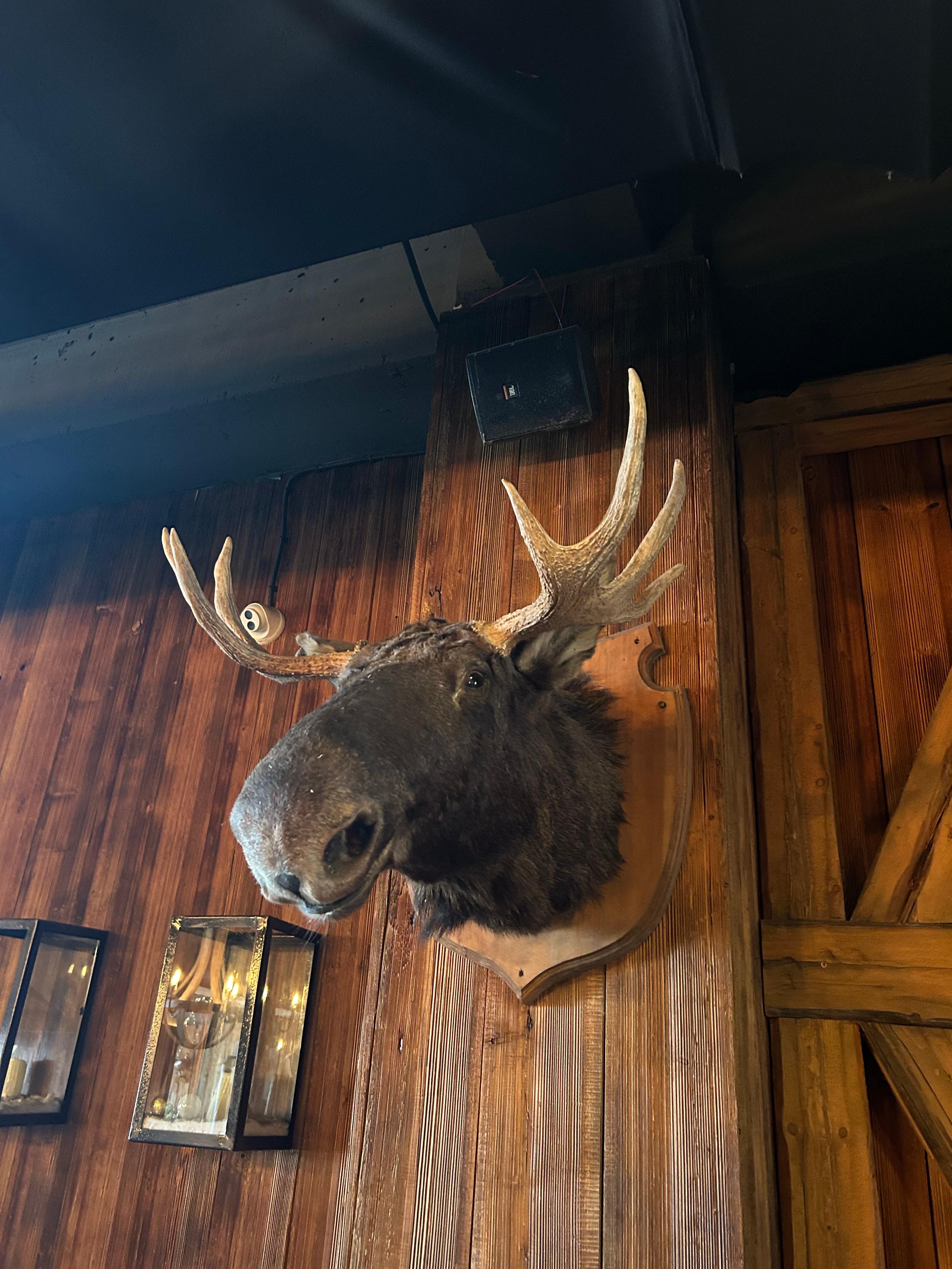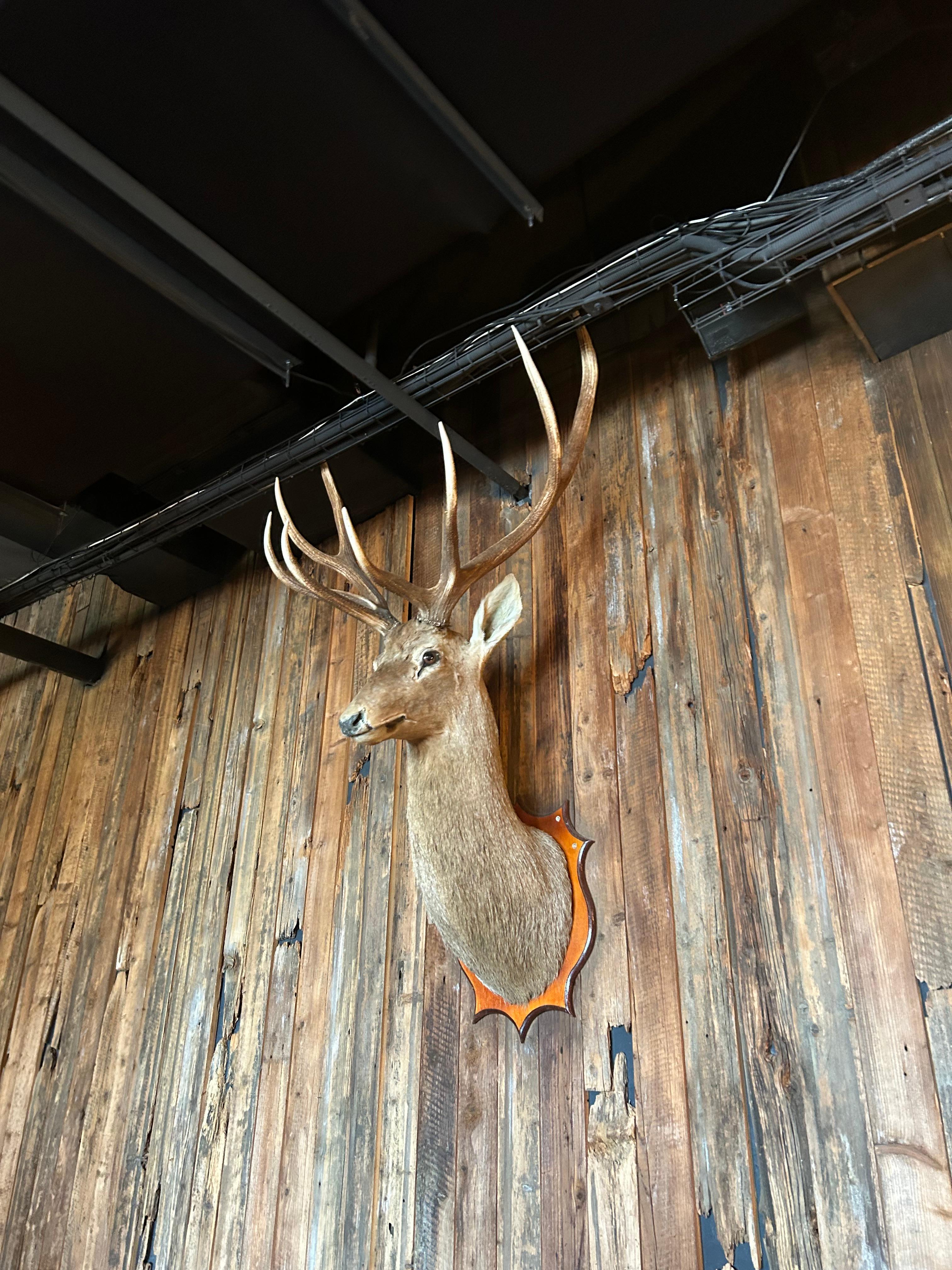 정상에 올라가지 전에 레스토랑에 들려서 점심을 먹었는데, 식당에 야생 동물들 전시가 되어있었습니다.