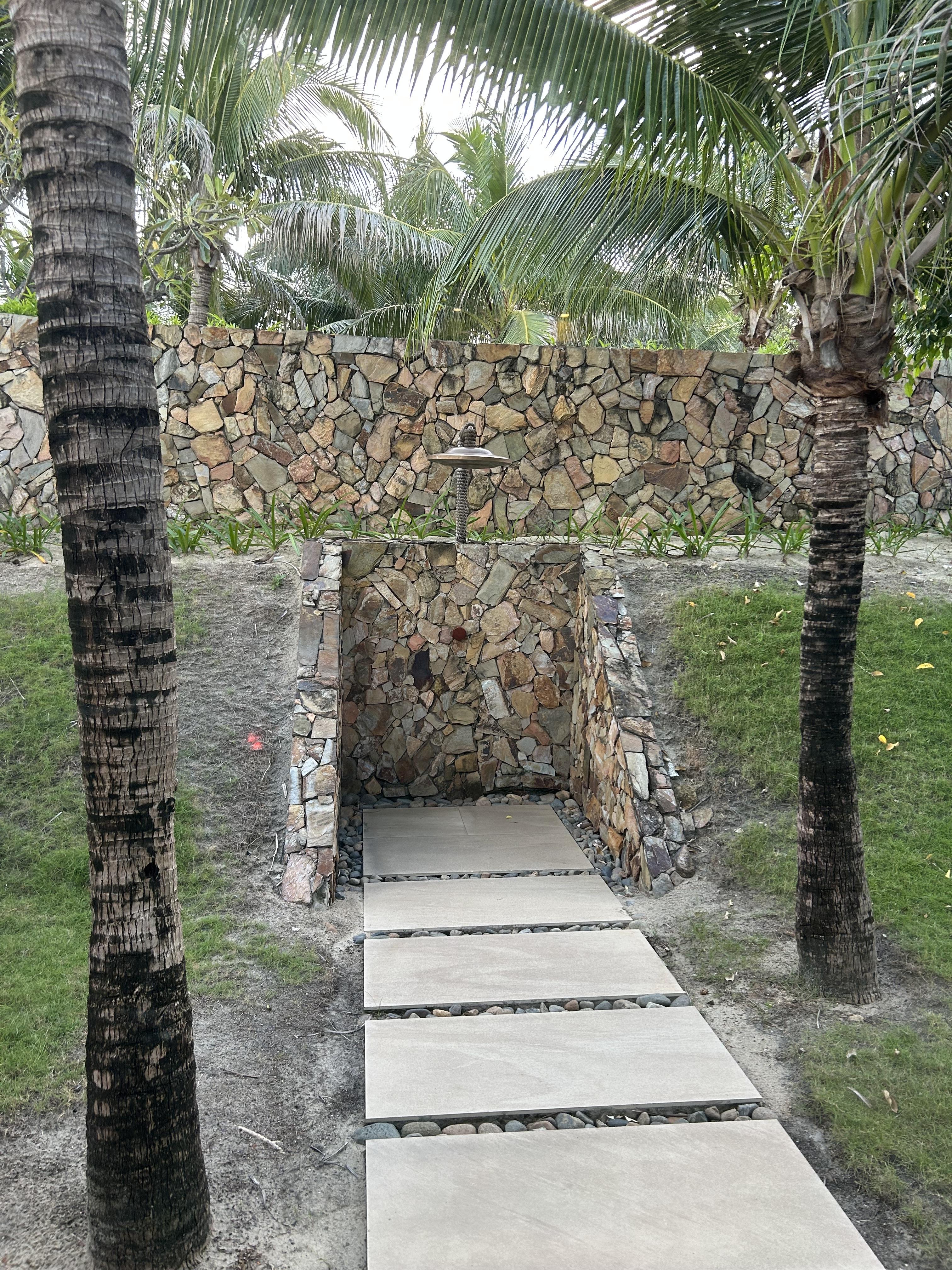 욕실 한편에는 야외 샤워장이 있어 동남아 느낌이 물씬 느껴집니다.