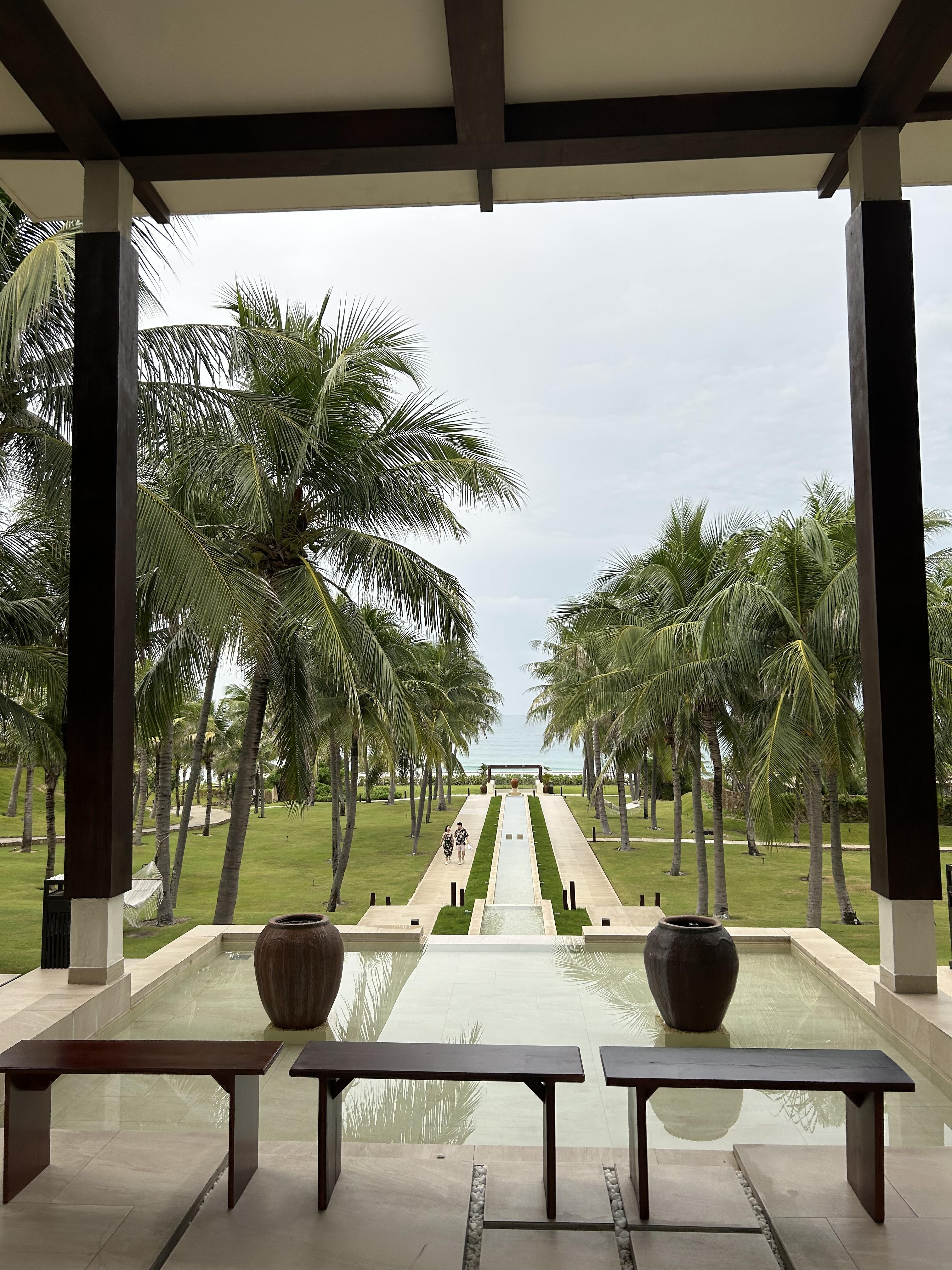 퓨전리조트 깜란하면 가장 많이 나오는 사진 중 하나인 프론트데스크가 있는 로비 사진입니다.