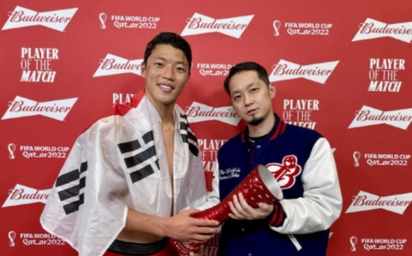 후반 교체 투입된 황희찬 선수는 버드와이저에서 선정하는 플레이어 오브 더 매치에 선정되어 트로피를 받았습니다. 부상으로 조별리그 1,2차전에 결장했던 황희찬 선수는 3차전 후반 20분에 교체로 들어와 후반 추가시간에 역전골을 터뜨려 포르투갈을 격침시켰습니다. 최고의 활약으로 버드와이어 플레이어 오브 더 매치를 수상하였습니다. 이번 수상은 한국팀 첫 수상이었습니다. 1차전 우루과이 전에서는 우루과이 발베르데가 수상하였고, 2차전 가나 전에서는 쿠두스 모하메드기 수상하였습니다. 시상은 가수 더 콰이엇이 하였습니다.