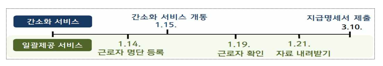 간소화서비스 일괄제공 동의를 하는 경우 회사에서 일괄적으로 자료를 받아 처리를 할수 있습니다. 회사는 1월 14일까지 명단을 홈텍스에 등록하고 근로자는 1월 19일까지 동의를 하여야 합니다.