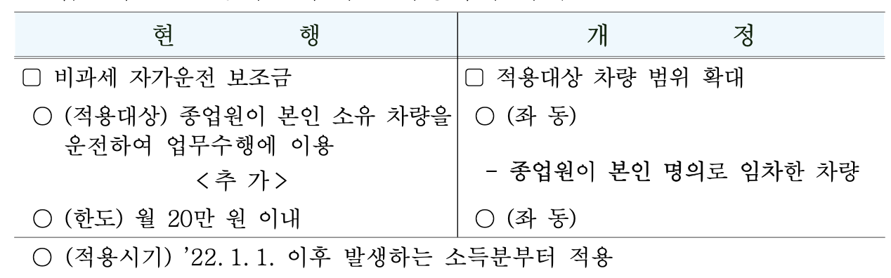 1. 비과세 자가운전보조금 적용 범위 확대