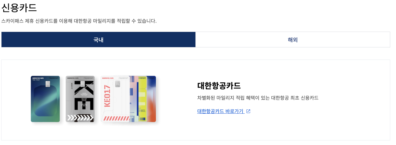 - 대한항공 마일리지 카드 추천(현대카드, 삼성카드) 바로가기