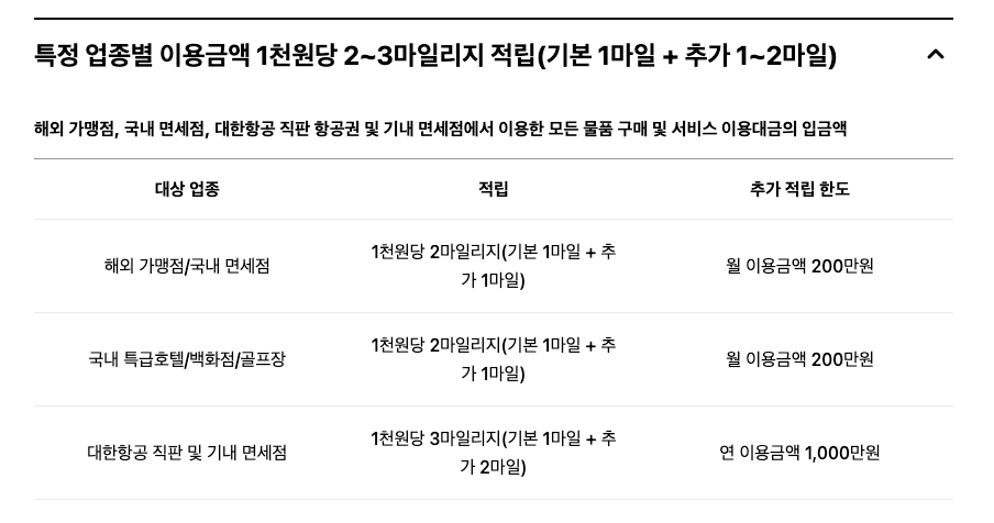 현대카드 대한항공마일리지 카드의 특징