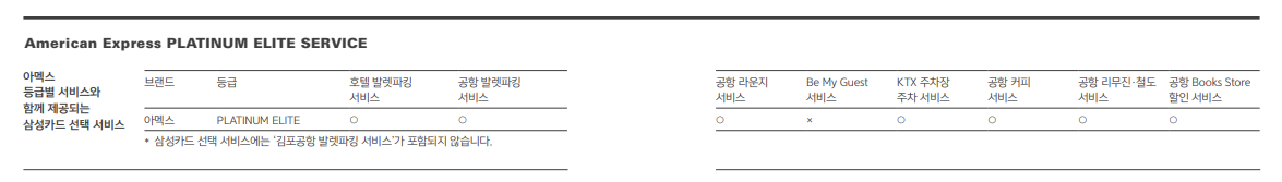 삼성카드는 아맥스 플래티넘, 아맥스 플래티넘 엘리트 서비스를 제공하고 있습니다. 주요 혜택으로 공항 발레파킹 무료, 공항 커피 무료 제공, 라운지 서비스 등이 있습니다. 저는 출국 시 공항에서 라운지 서비스와 무료 커피 서비스를 알차게 이용하였습니다.
