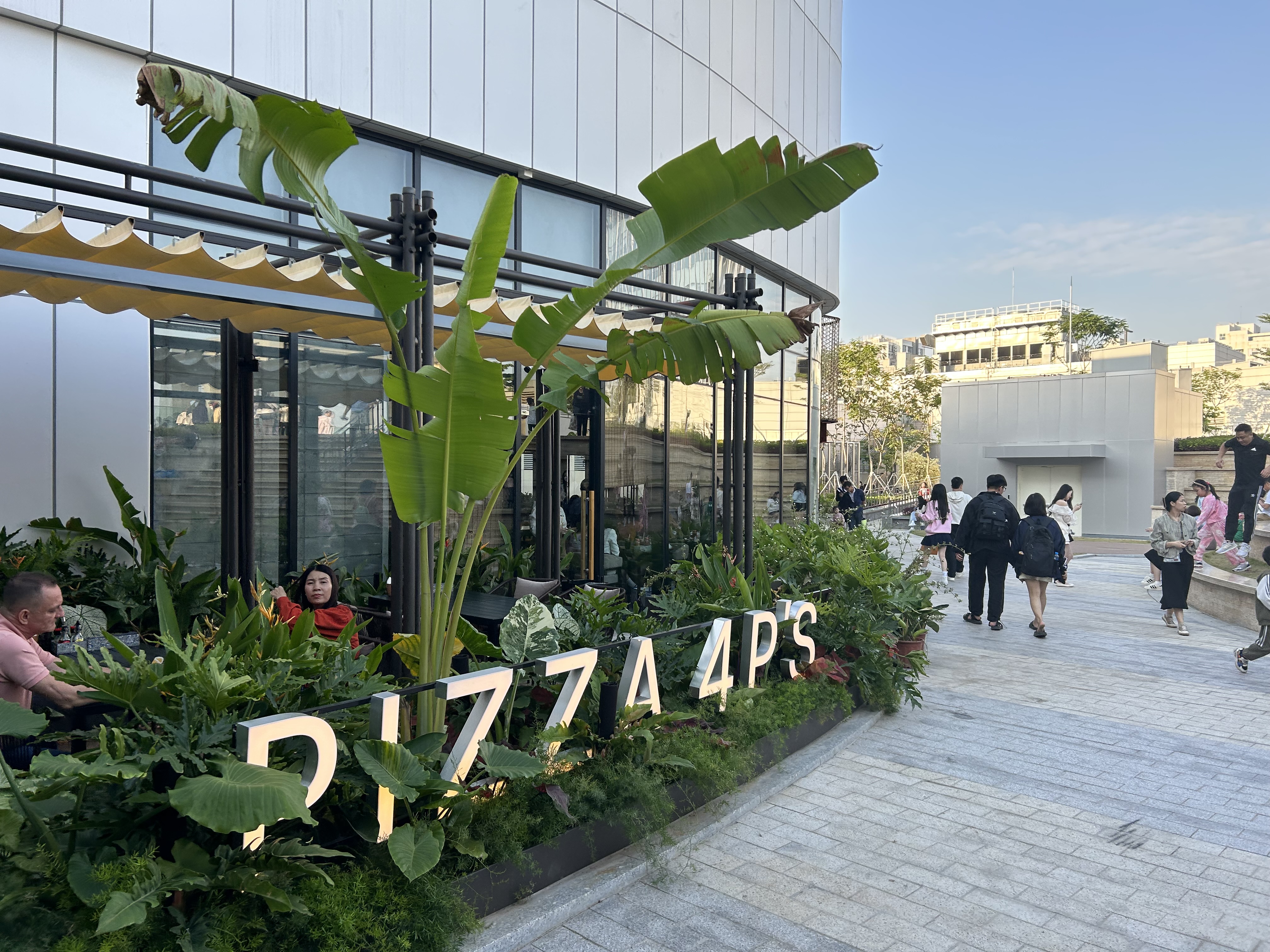 옥상정원에서는 휴식 공간과 포토스팟이 있었습니다. 옥상정원 한쪽에는 베트남에서 인기가 많은 피자집인 'PIZZA 4P'S'가 있습니다.