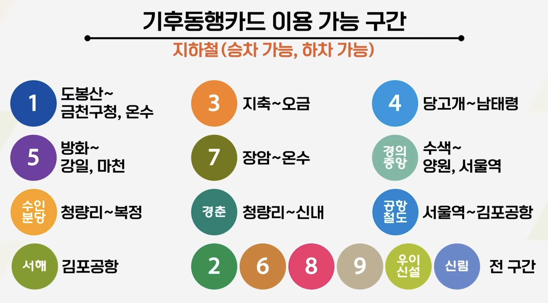 노선별로 이용 가능한 구간이 다르니 이용 전 꼭 참고하셔야 합니다.