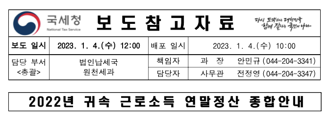 2022년 귀속 근로소득 연말정산 종합안내 (6) | 2023.01.11 |