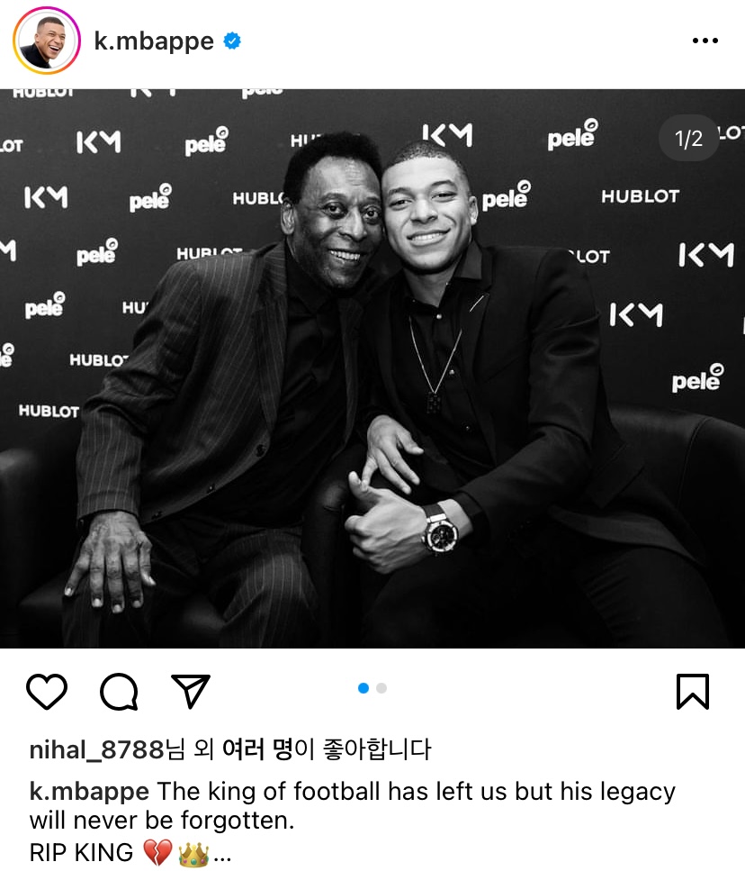 축구황제의 별세 소식을 들은 전 세계 축구인들은 애도 메시지를 남기고 있습니다. 카타르 월드컵을 우승으로 이끈 아르헨티나의 메시, 브라질 국가대표 에이스 네이마르, 프랑스 에이스 음바페, 포르투갈 호나우두 등 많은 축구 스타들이 펠레를 애도하는 메시지를 남기고 있습니다.